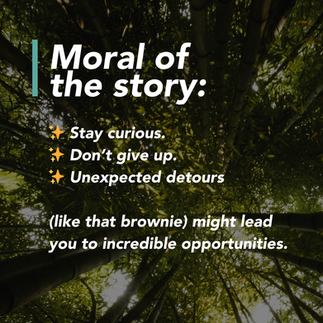 Embrace unexpected detours. Sometimes the unplanned moments (even a questionable brownie) become the very thing that pushes you forward.